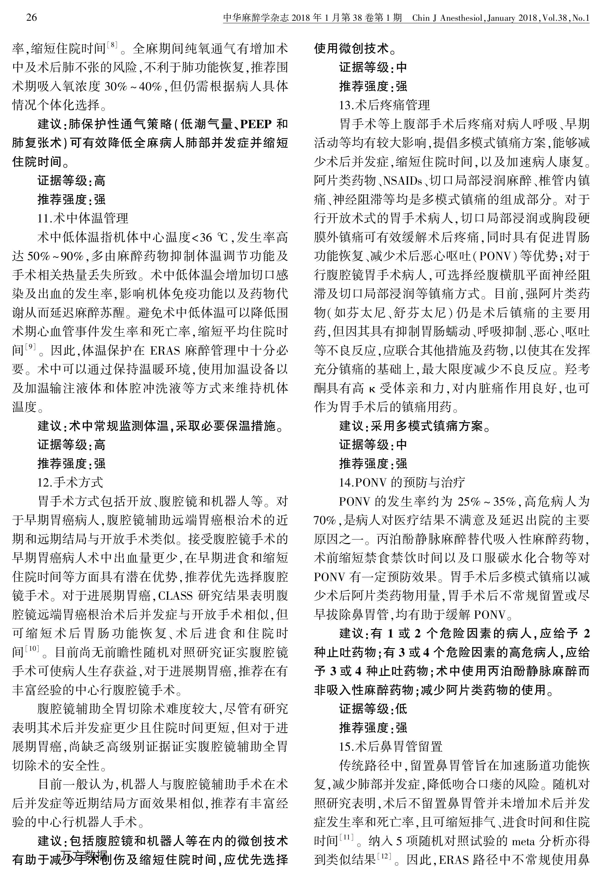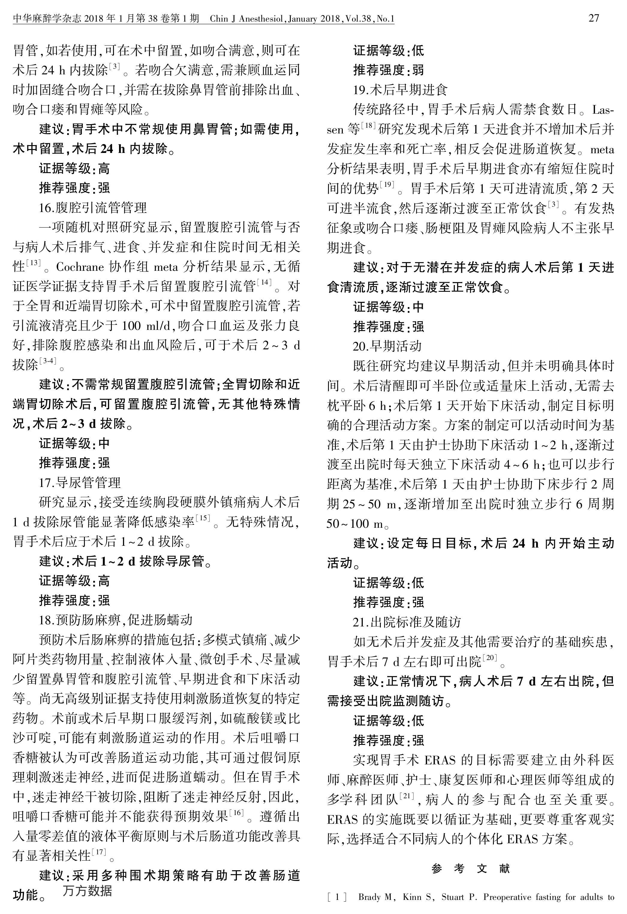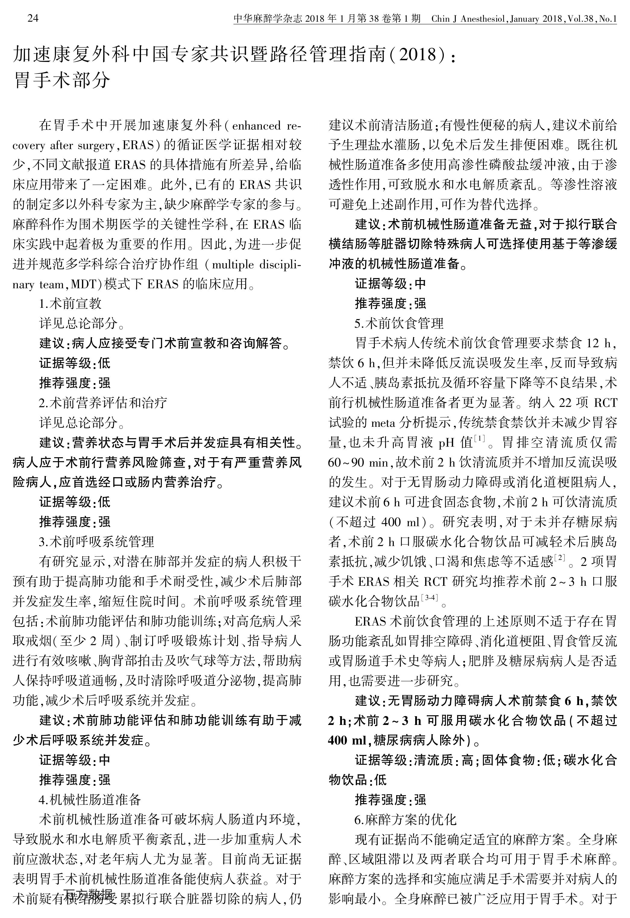 加速康复外科中国专家共识暨路径管理指南(2018):胃手术部分